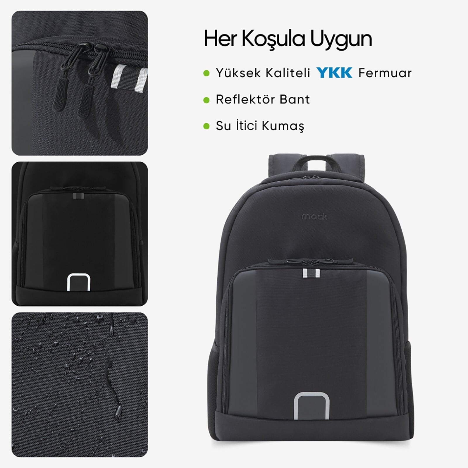 Mack Luna Eco MCE-1201 Çevre Dostu Reflektörlü Laptop Sırt Çantası, Seyahat Sırt Çantası, Macbook Sırt Çantası, Erkek Kadın 15.6 inç Bilgisayar Çantası, Siyah