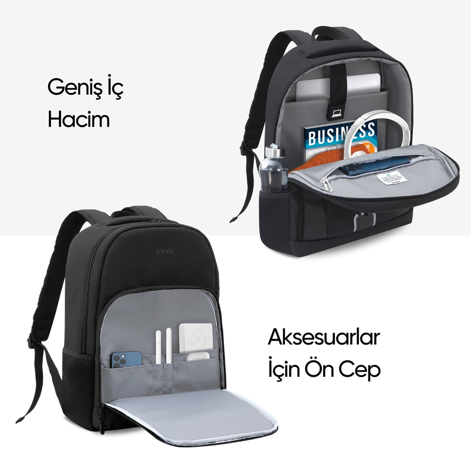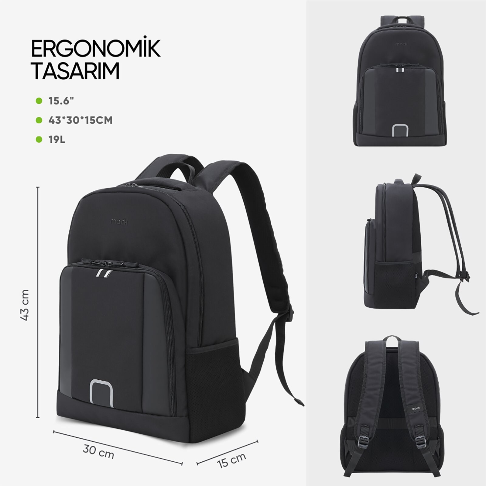 Ergonomik ve şık tasarımı sayesinde Laptop Sırt çantası hem Seyahat çantası hem de Okul çantası olarak kullanılabilir. Ayrıca aksesuarlar için özel olarak tasarlanmış ön ve iç cepler, kullanıcının eşyalarını organize etmesine ve kolay erişim sağlamasına yardımcı olur. Ayrıca notebook çantası şişe ve şemsiye için yüksek kaliteli fileden esnek yan ceplere sahiptir.
